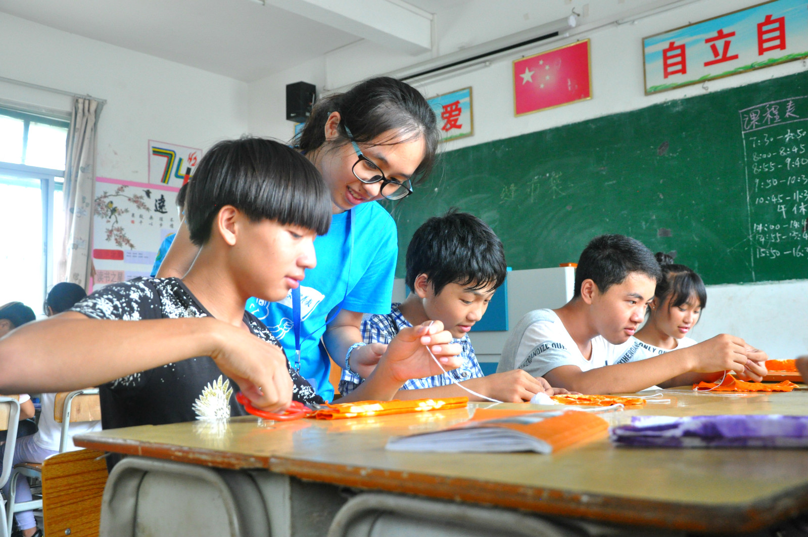 本次暑期下鄉支教項目設置了五個支教點,分別在云浮、河源、梅州、茂名、廉江。志愿者們為學生們帶來音樂、扎染、定向越野等別開生面的課堂。