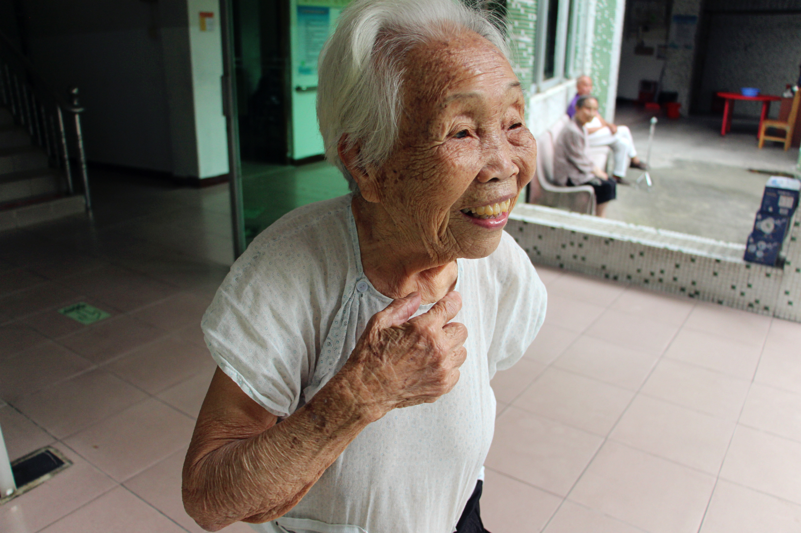 “我九十六歲了,我們以前很窮,很辛苦的,每天挑泥做苦力,就為了賺一口飯吃。你們讀大學,做一份好工作,真的很叻(棒)。有空就帶禮物來送給我們,唱歌跳舞給我們這些老人看,你們真好,謝謝你們!”