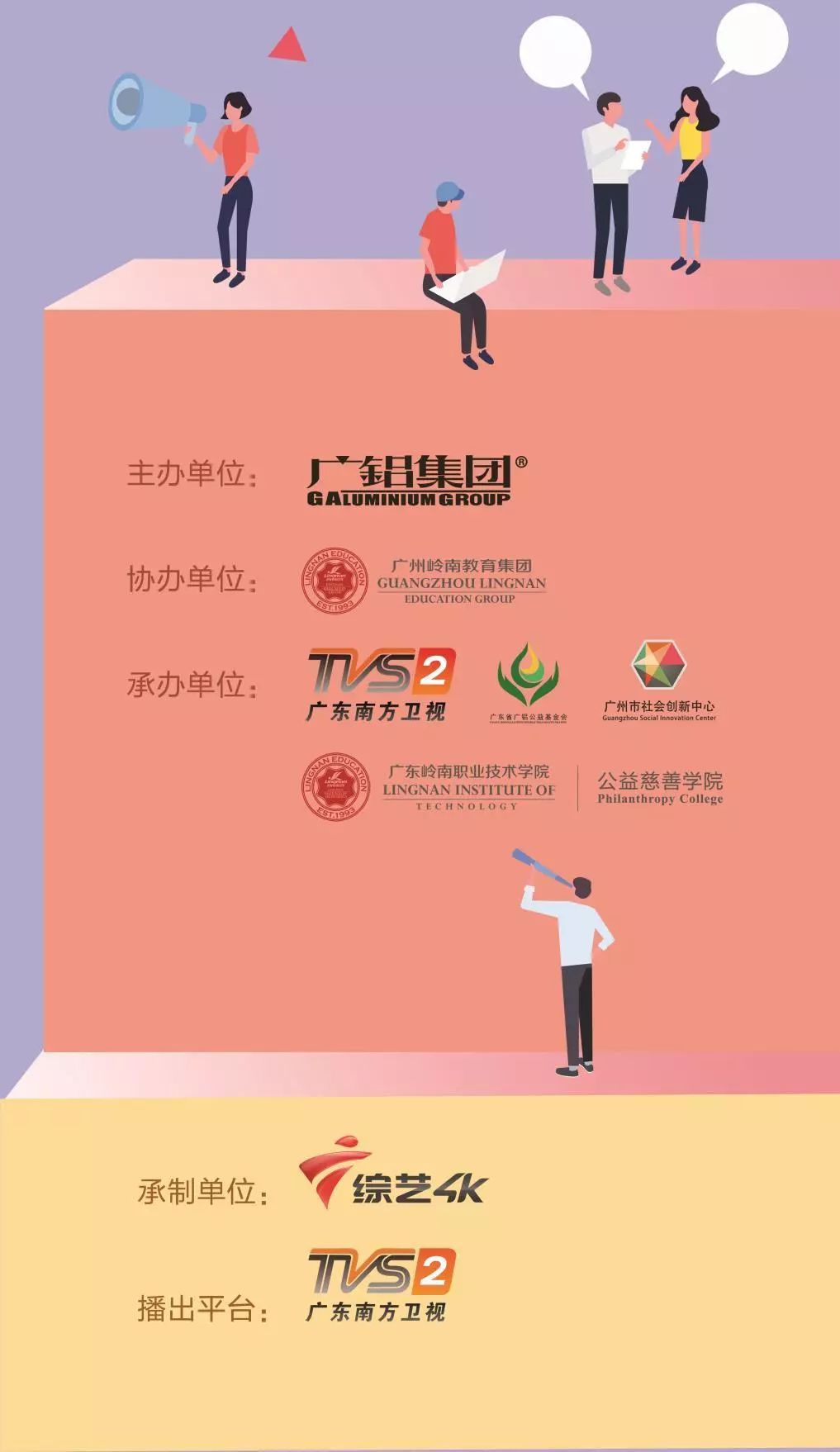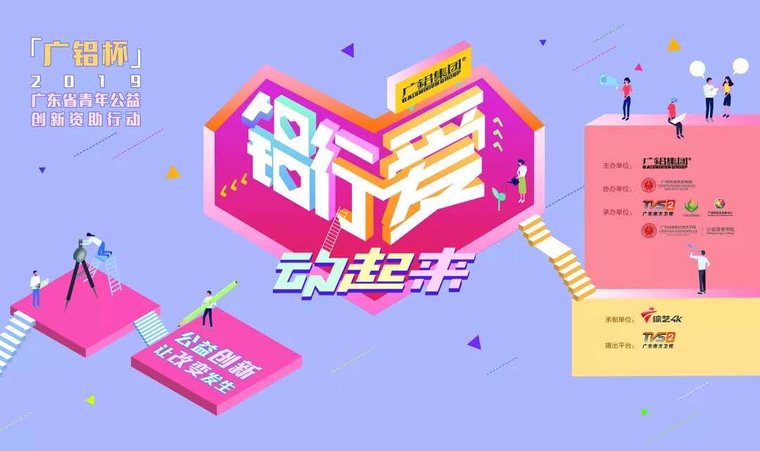 由廣鋁集團有限公司主辦,廣州嶺南教育集團協辦,廣東廣播電視臺南方衛視、廣東省廣鋁公益基金會、廣東嶺南職業技術學院公益慈善學院、廣州市社會創新中心承辦,廣東廣播電視臺綜藝4K頻道承制的《鋁行愛 動起來“廣鋁杯”2019廣東省青年公益創新資助行動》活動正在熱烈進行中。
