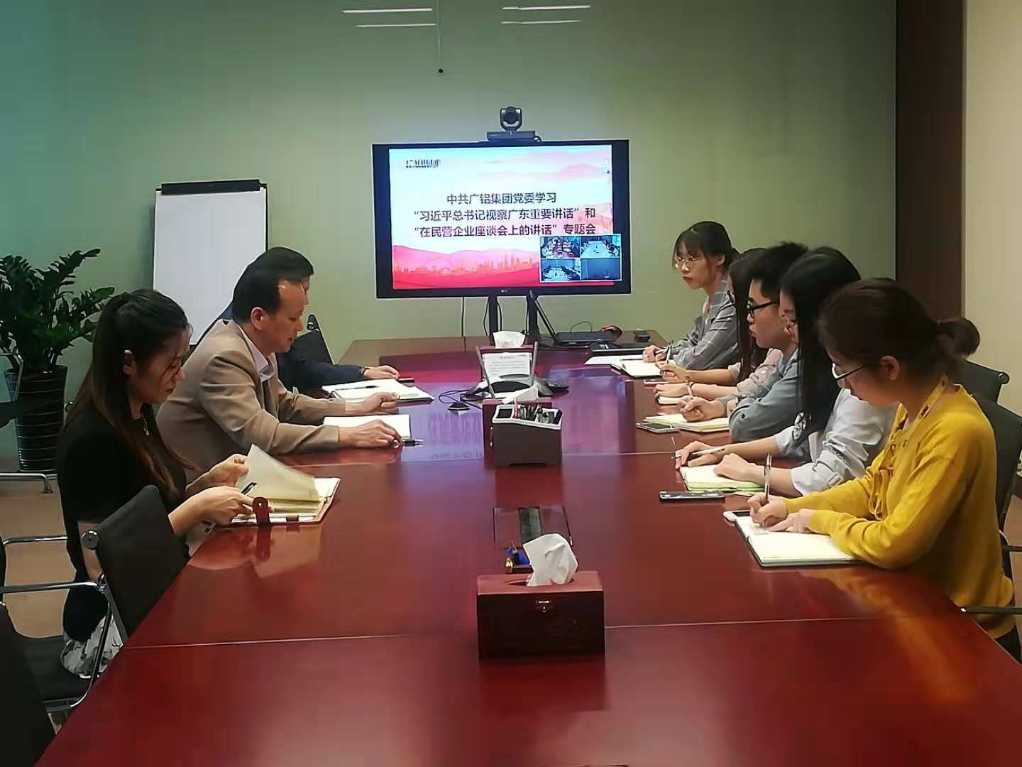 11月7日,廣鋁集團黨委組織召開圍繞“習近平總書記視察廣東重要講話”和“在民營企業座談會上的講話”的專題學習交流會,黨委書記夏文鋒主持了本次會議,廣鋁集團第二、第三、第四黨支部遠程視頻參會。