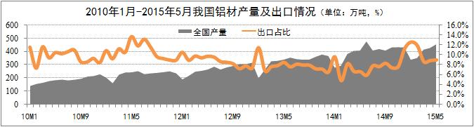 鋁材業(yè)務(wù)平穩(wěn)增長(zhǎng)。統(tǒng)計(jì)數(shù)據(jù)顯示,5月份國(guó)內(nèi)鋁材產(chǎn)量456萬(wàn)噸,環(huán)比增長(zhǎng)6.8%;鋁材出口41萬(wàn)噸,環(huán)比增長(zhǎng)7.9%,占鋁材總產(chǎn)量的9%,占比環(huán)比略有上升。出口份額的增長(zhǎng)即得益于國(guó)際市場(chǎng)經(jīng)濟(jì)的復(fù)蘇預(yù)期,得益于財(cái)政部取消部分鋁產(chǎn)品15%的關(guān)稅政策。取消關(guān)稅的部分鋁材包括:非合金鋁條、桿;截面周長(zhǎng)≥210mm的鋁合金制條、桿;截面周長(zhǎng)<210mm的鋁合金條、桿。