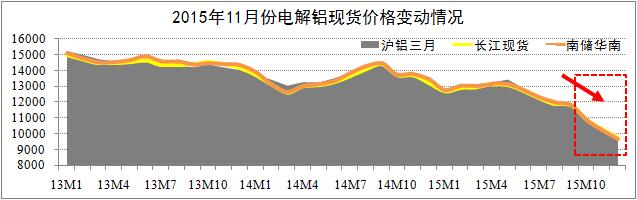 期貨市場方面:截至11月24日,滬鋁三月結算跌至9670元,自跌破萬元大關以來,滬鋁主力合約日均漲跌幅為1.4%-2.1%;LME鋁三月結算跌至1446美元,其跌幅自今年8月以來開始低于滬鋁跌幅。研究認為,滬鋁三月與LME鋁三月結算價將逐步筑底于9600元關口(Min.值),期鋁價格將迎來較大的反彈空間。