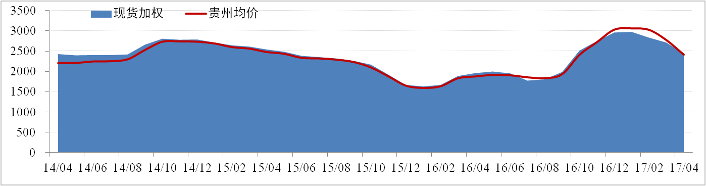 全國現(xiàn)貨價格方面,5月18日全國氧化鋁現(xiàn)貨加權(quán)價為2,286元/噸,較月初環(huán)比下降4.67%。貴州氧化鋁現(xiàn)貨加權(quán)價為2,260元/噸,較月初環(huán)比下降4.67% 。4月份北方價格快速下滑致使西南地區(qū)庫存壓力加快,5月西南地區(qū)氧化鋁現(xiàn)貨成交價格領(lǐng)跌與全國現(xiàn)貨價格。
