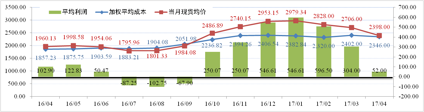 援引行業(yè)數(shù)據(jù)顯示:2017年4月中國國產(chǎn)氧化鋁按運(yùn)行產(chǎn)能加權(quán)平均成本2346元/噸,較3月份下跌約54元/噸。其中,煤炭和礦石價格小幅下滑、燒堿價格受環(huán)保因素影響相對堅(jiān)挺。以4 月末的大單成交平均價格 2300 元來計(jì)算,多數(shù)氧化鋁企業(yè)已經(jīng)開始進(jìn)入盈虧平衡甚至微虧狀態(tài)。