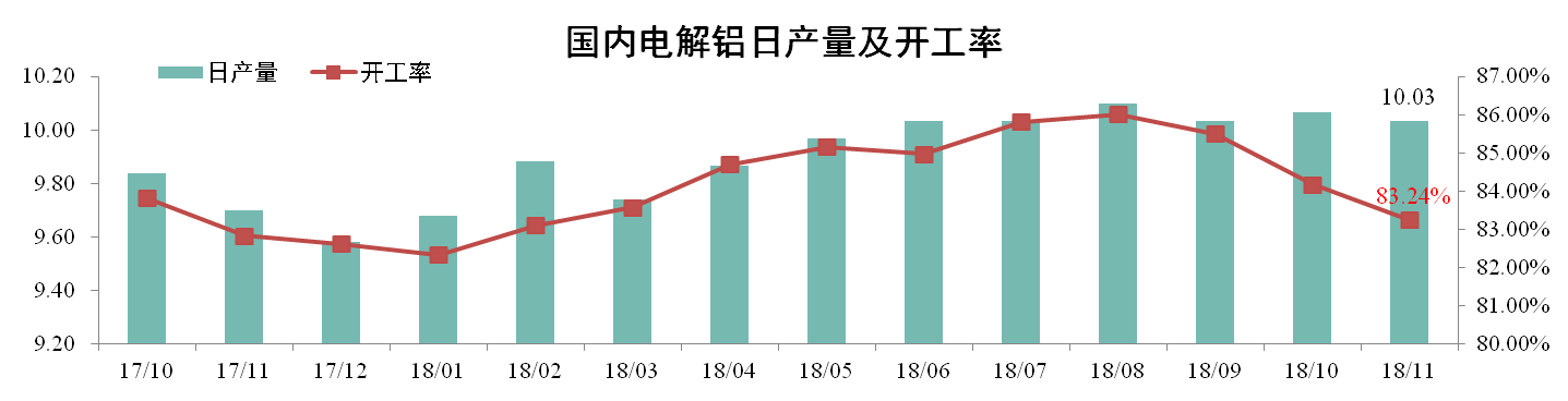 分析認(rèn)為:11月鋁價市場低迷,高成本企業(yè)減產(chǎn)居多,加之采暖季影響,電解鋁產(chǎn)量下降。鋁價的大幅下跌是減產(chǎn)的根本原因,12月電解鋁下游需求或繼續(xù)疲軟,預(yù)計產(chǎn)量仍有下行趨勢。