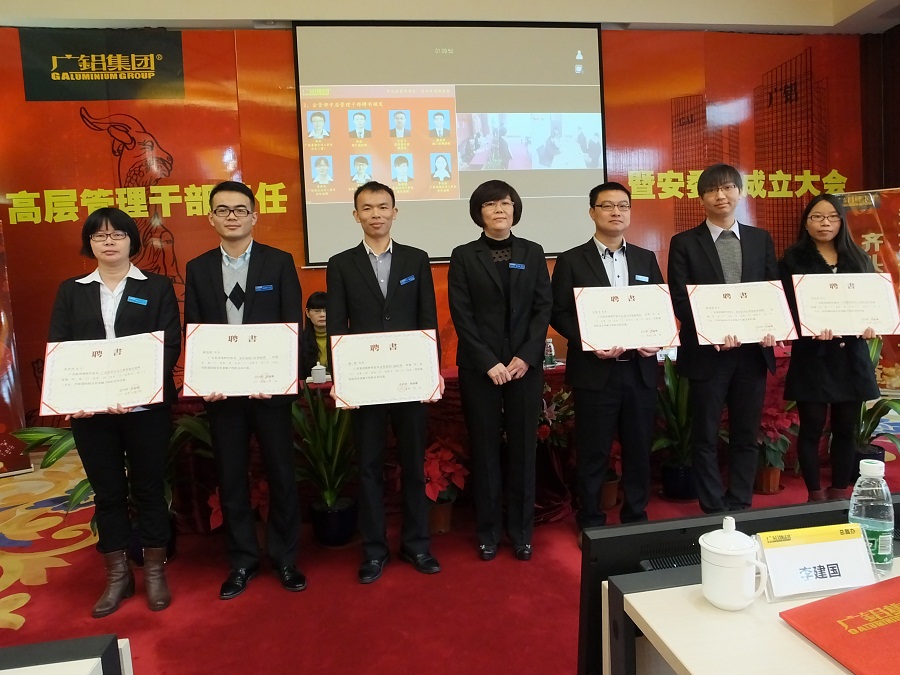 會(huì)議上,集團(tuán)公司高層領(lǐng)導(dǎo)對(duì)集團(tuán)本部15名中層管理干部及主持部門工作的助理級(jí)管理干部頒發(fā)了2015年度任職資格聘任證書。首先,由集團(tuán)董事、常務(wù)副總裁黃丹華為總裁辦中層管理干部頒發(fā)了聘書;隨后,結(jié)算部總經(jīng)理助理李漢香為結(jié)算部中層管理干部頒發(fā)了聘書;最后,董事會(huì)秘書長、副總裁兼企管部總經(jīng)理曾麗娜為企管部中層管理干部及主持部門工作的助理級(jí)管理干部頒發(fā)了聘書。貴州鋁業(yè)公司、貴州礦業(yè)公司董事長葉永標(biāo)代表為貴州鋁業(yè)公司財(cái)務(wù)處及人資處共2名管理干部頒發(fā)了聘書。