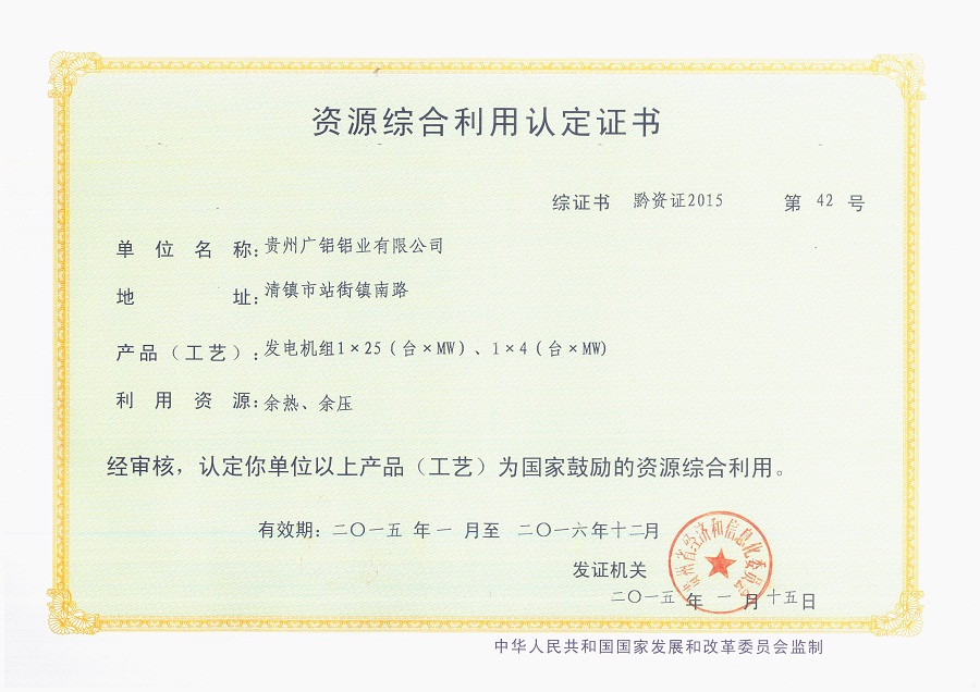 資源綜合利用證書是國(guó)家鼓勵(lì)企業(yè)開(kāi)展資源綜合利用、促進(jìn)經(jīng)濟(jì)社會(huì)可持續(xù)發(fā)展的重要舉措。該項(xiàng)證書的取得很大程度上的降低了我司的生產(chǎn)成本,能更大限度地利用現(xiàn)有資源,有力地推進(jìn)氧化鋁生產(chǎn)加工作業(yè)。其中,我司配套建設(shè)的1×25MW、1×4MW兩臺(tái)背壓發(fā)電機(jī)組年可發(fā)電近4000萬(wàn)度,按照國(guó)家相關(guān)規(guī)定,取得資源綜合利用認(rèn)定證書的企業(yè),可減免該項(xiàng)資源稅務(wù),每年能為公司節(jié)約部分發(fā)電成本。