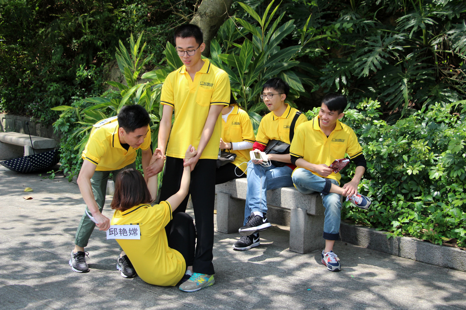 9點整,白云山腳下出現了一道亮黃色的特別風景,雖然天突降大雨,但仍澆不滅大家的熱情。