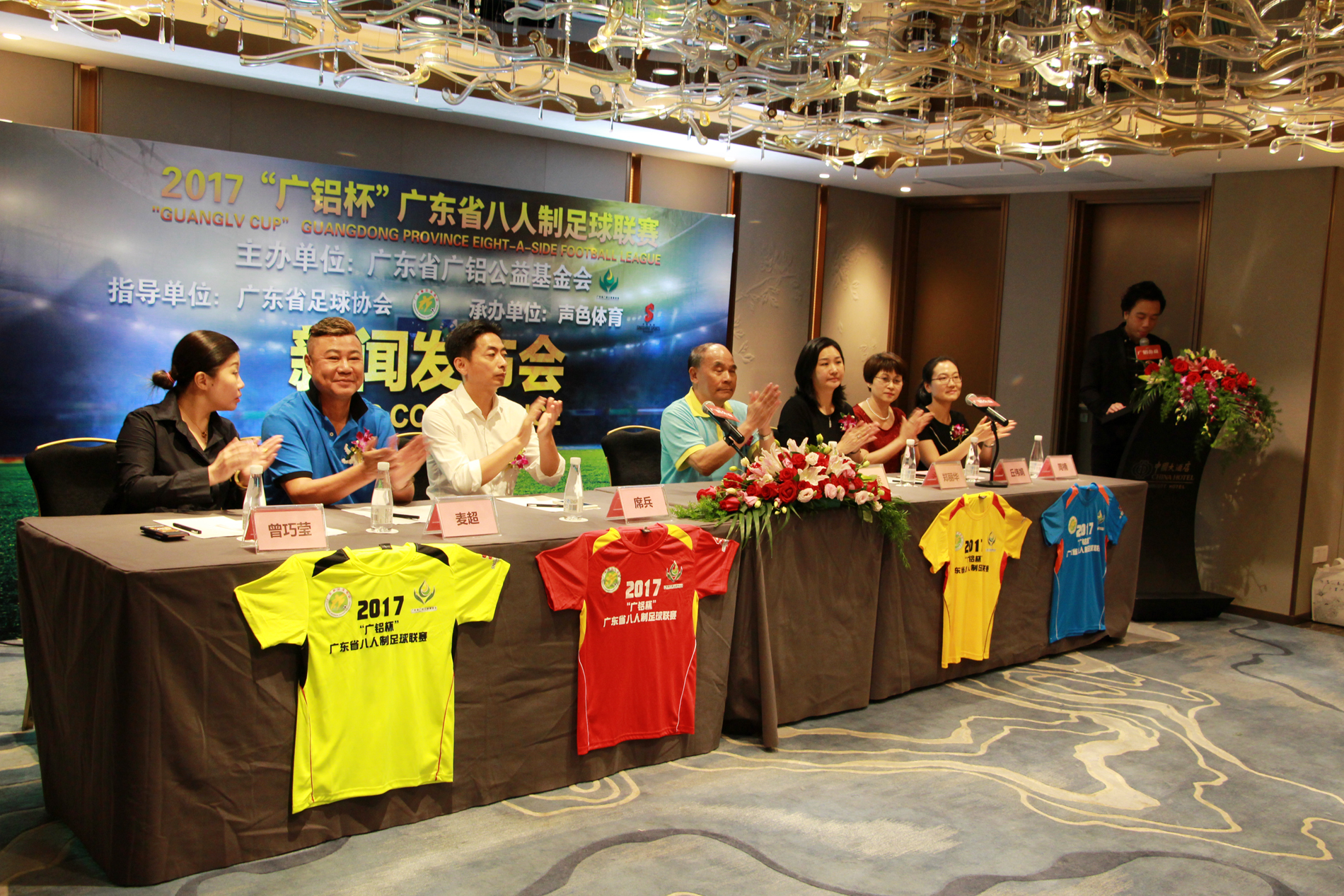 發稿時間:2017-06-08由廣東省足球協會擔任賽事指導,廣東省廣鋁公益基金會獨家冠名贊助并主辦,廣州聲色體育承辦的2017“廣鋁杯”廣東省八人制足球聯賽新聞發布會于6月8日在廣州中國大酒店隆重舉行。