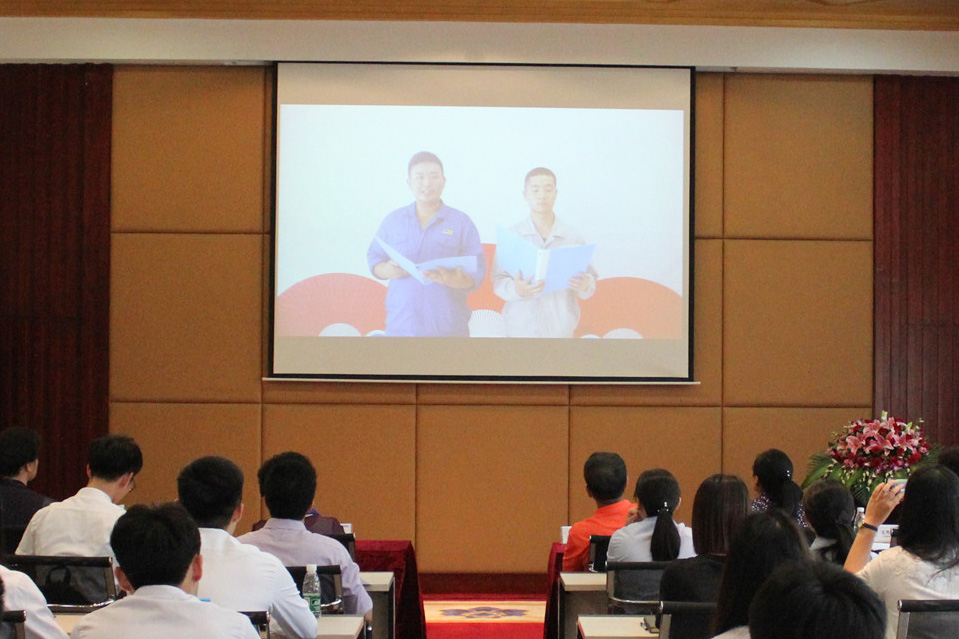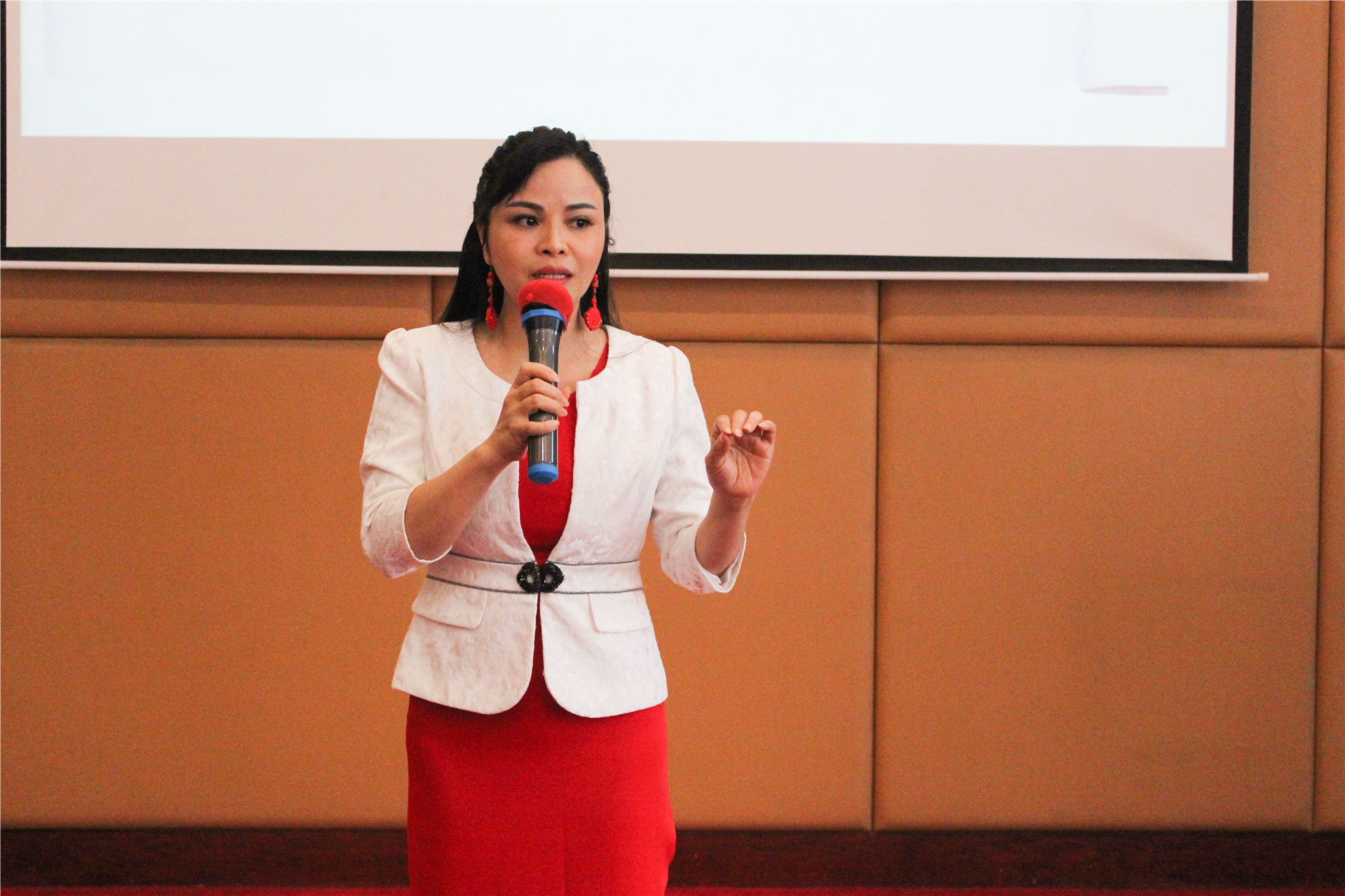 曾玉婷老師用自己剛才朗誦的《致橡樹》作為例子,向員工們傾囊分享自己的朗誦經驗,更邀請大家上臺嘗試不同的身份說出同一句話時的區別。更有好學的員工當場向老師請教關于朗誦“代入感”的問題。