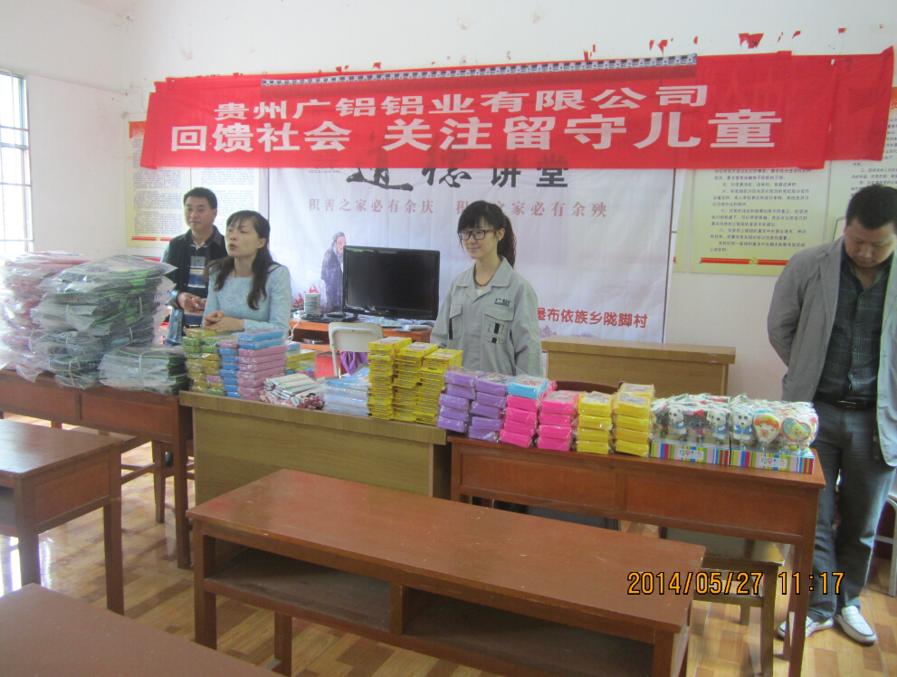 上午9:30時,滿載慰問品的車隊從公司出發(fā),并用半小時左右的時間到達(dá)目的地——隴腳村。隴腳村位于貴陽市東北部烏當(dāng)區(qū)新堡布依族鄉(xiāng)境內(nèi),地處山區(qū),經(jīng)濟(jì)落后,交通閉塞。在當(dāng)?shù)卮逦瘯姆e極配合下,慰問活動進(jìn)展井然有序。到達(dá)目的地后,我們首先向各位村民簡要介紹了貴州廣鋁鋁業(yè)有限公司以及此行的目的,隨后為留守兒童逐一派發(fā)了書包、文具等學(xué)習(xí)用品。看到小朋友們臉上天真無邪的笑容,我們的心中充滿了喜悅和感動。