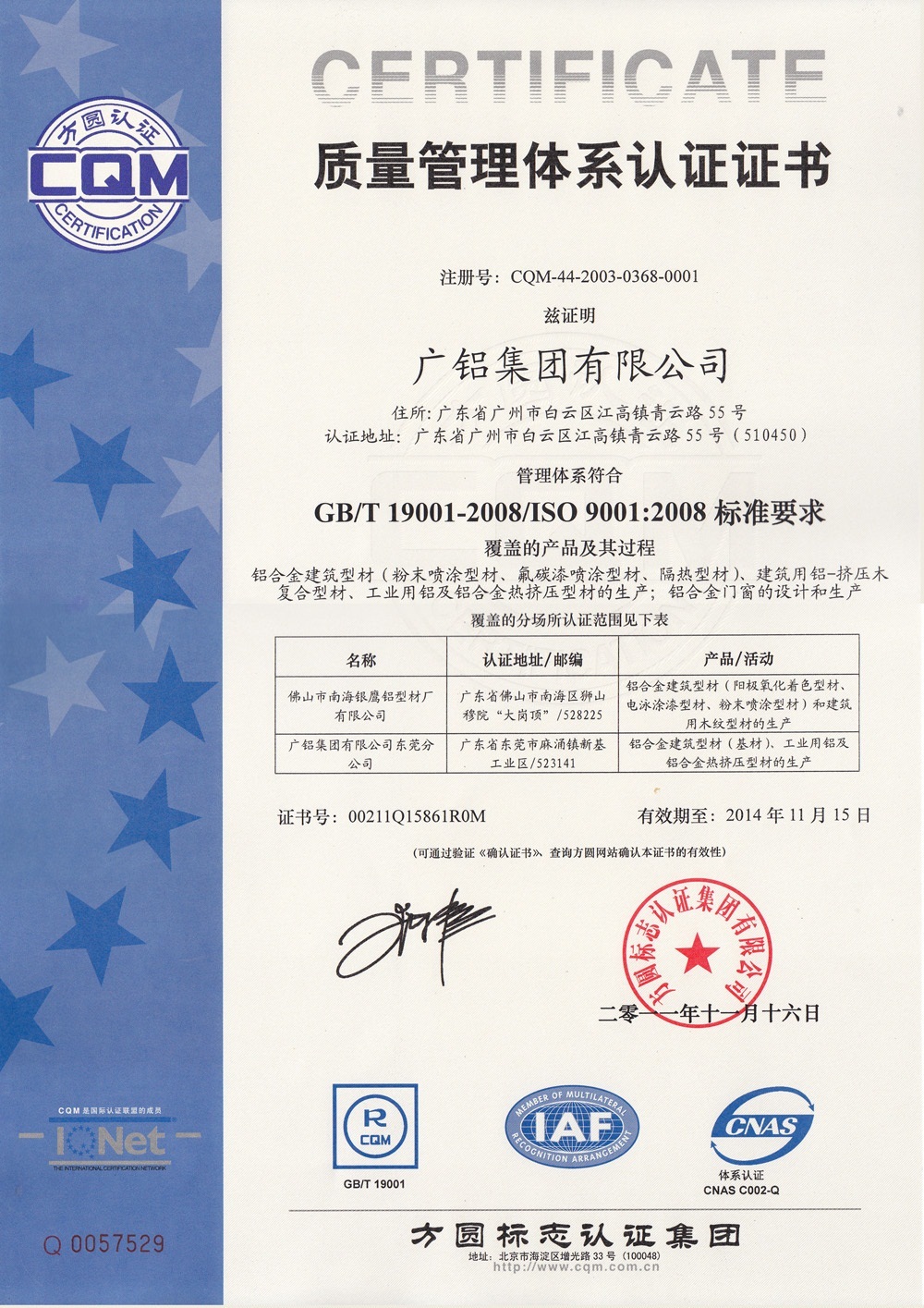 About Voice of chairman Company introduction Galuminium culture Honors & awards News Download Mobile Phone APP for GAL GAL for Android GAL for iPhone ———————————— Wechat of Galuminium Add: Please search: GaluminiumGroup or you can scan qr code directly ———————————— m.hbchaoyi.cn China Well-known Trademark National Enterprise of New and Advance Technology National Accreditation Laboratory Guangdong Province Enterprise Technical Center Construction of curtain wall and installation Qualification Grade 1 certification Guangdong Province famous brand product Guangzhou City first-batch Headquarter Enterprises High-tech products in Guangdong province FangYuan products quality system certificate Adopting international standard products symbolic certificate ISO9001 Quality Management System Certification ISO14000 Environmental Management System Certification China's top 10 energy-saving and innovative enterprises The famous trademark of Guangdong province Contract-honored and credible enterprise AA level of Guangzhou City harmonious labor relations enterprise Guangdong province Top 100 Private Enterprise Workers pioneer organization ADOPTING INTERNATIONAL STANDARD PRODUCT MARKING CERTIFICATE